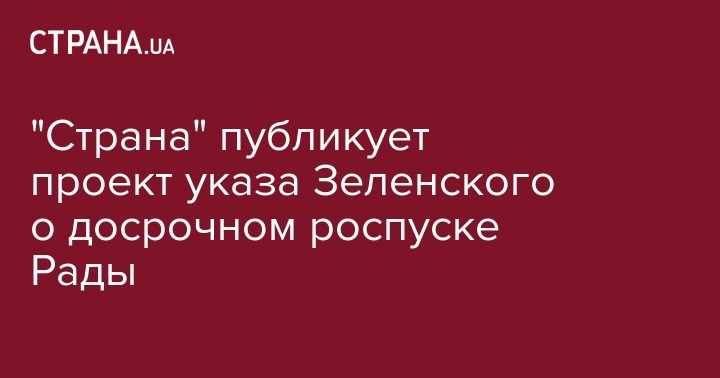 Проект нам передали источники в окружении Зеленского, уточнив, что это преварительный вариант. И окончательный текст не утвержден. Также как и не утверждено окончательное решение о роспуске Рады. "Еще идут дискуссии, но проект уже есть. Возможно, он еще будет дорабатываться", - сказал источник.