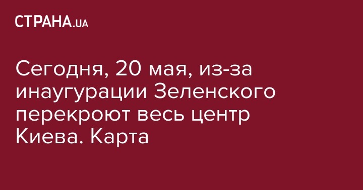 В понеедльник, 20 мая, из-за инаугурации Владимира Зеленского, будет полностью перекрыт центр Киева. Об этом сообщает пресс-служба столичной полиции.