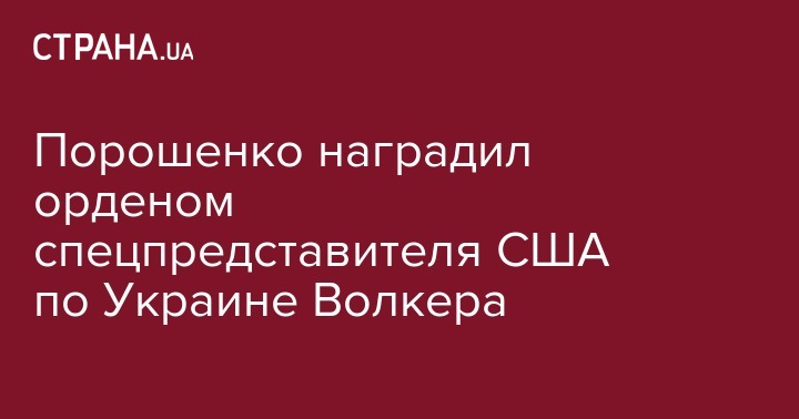 "За весомый личный вклад в поддержку и развитие демократии на Украине, восстановление государственного суверенитета и территориальной целостности украинского государства постановляю: наградить орденом князя Ярослава Мудрого V степени Курта Волкера - специального представителя Соединенных Штатов Америки по вопросам Украины", - сказано в указе №284/2019.