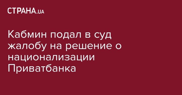 Кабинет Министров 16 мая подал жалобу на решение Окружного административного суда о признании незаконной и отмене национализации Приватбанка (который принадлежал вернувшемуся в Украину Игорю Коломойскому - Прим.Ред.). Об этом передают "Украинские Новости".