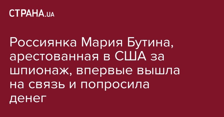 Россиянка Мария Бутина, арестованная в США за шпионаж, впервые вышла на связь и попросила денег