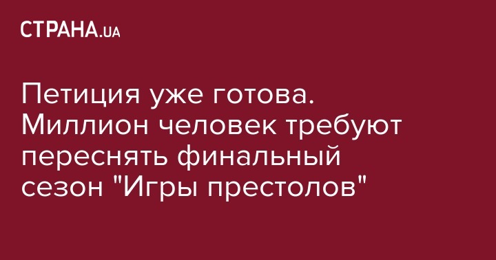 На сайте change.org появилась петиция с требованием к каналу HBO переснять восьмой сезон культового сериал. Ее уже подписали чуть больше миллиона человек, как передает портал Meduza