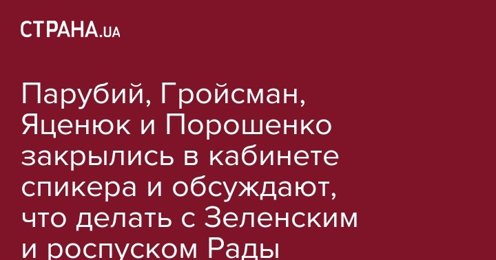 После инаугурационной речи Владимира Зеленского, в которой он заявил, в частности, о роспуске Верховной Рады, в кабинете спикера проходит встреча экс-президента Петра Порошенко, главы Верховной Рады Андрея Парубия, премьер-министра Владимира Гройсмана, а также лидера партии "Народный фронт" Арсения Яценюка.