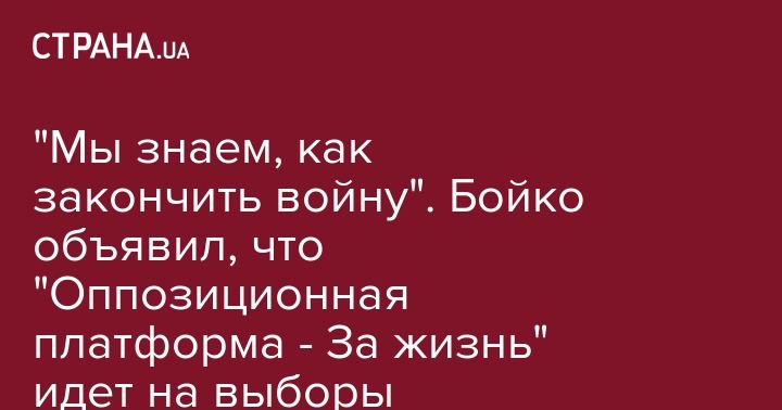 "Мы знаем, как закончить войну". Бойко объявил, что "Оппозиционная платформа - За жизнь" идет на выборы