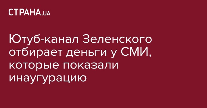 Официальный YouTube-канал Владимира Зеленского присвоил себе права на общедоступное видео инаугурации нового президента, которое использовали сегодня десятки СМИ.