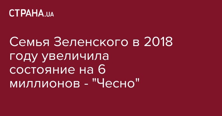 Семья Зеленского в 2018 году увеличила состояние на 6 миллионов - "Чесно"