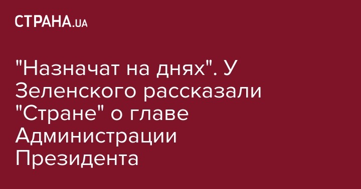 "Назначат на днях". У Зеленского рассказали "Стране" о главе Администрации Президента