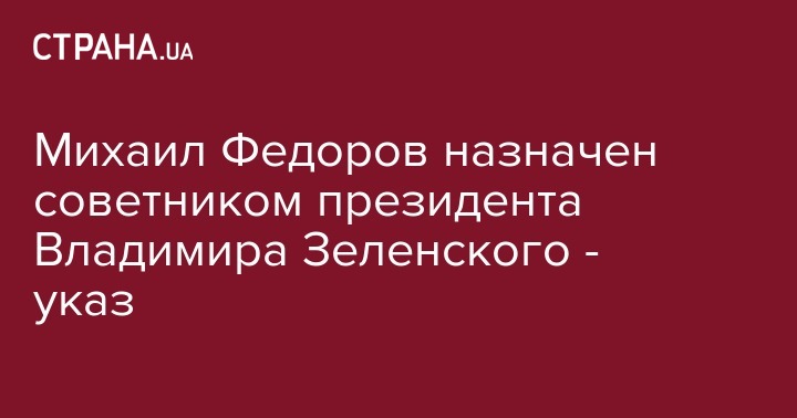 "Назначить Федорова Михаила Альбертовича Советником Президента Украины (вне штата)", - говорится в документе.