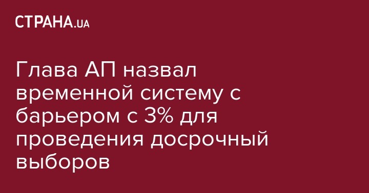 Глава администрации президента Украины Андрей Богдан заявил, что пропорциональная система с 3%-ным проходным барьером, которая предлагается для проведения досрочных выборов в парламент, является временной, а затем нужно будет принять Избирательный кодекс и вводить систему с открытыми списками.
