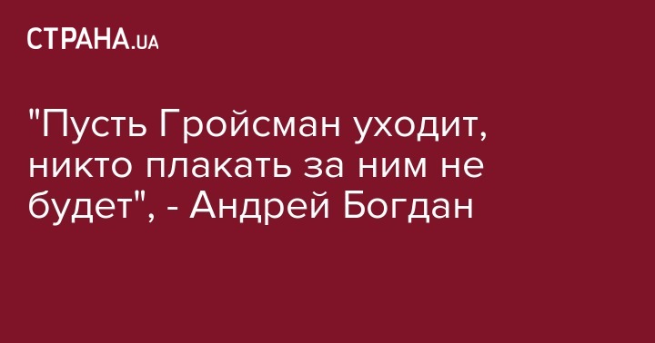 Андрей Богдан, новый глава Администрации президента Украины довольно оригинально прокомментировал решение премьера Гройсмана подать в отставку. По мнению главы АП никто плакать по премьер-министру не будет и коллапса в стране не произойдет.