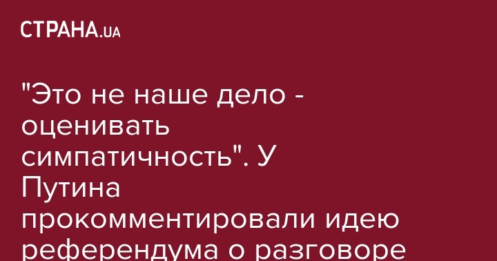 В ходе общения с журналистами в среду пресс-секретаря Путина попросили прокомментировать идею нового президента Украины Владимира Зеленского о референдуме по связям с Россией. На что Песков ответил, что это внутреннее дело Украины.