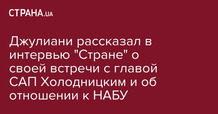 Джулиани рассказал в интервью "Стране" о своей встречи с главой САП Холодницким и об отношении к НАБУ