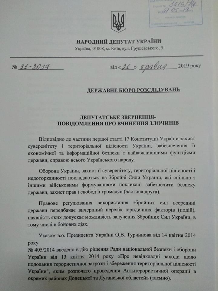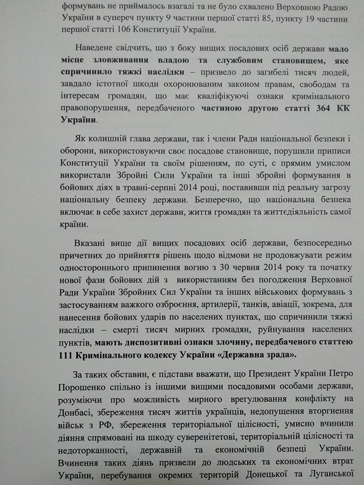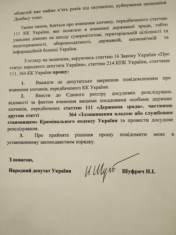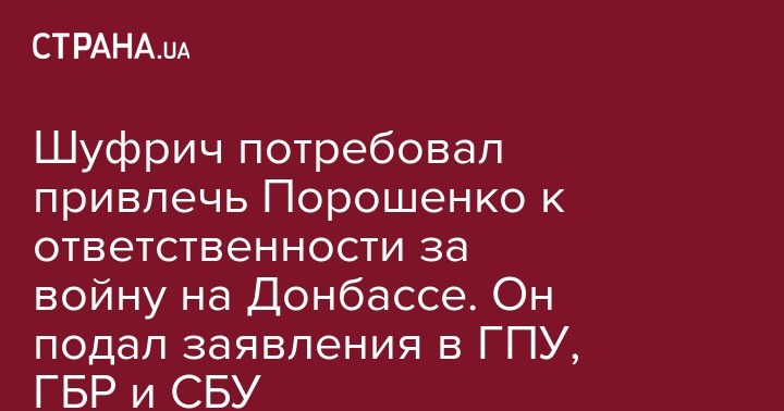 Шуфрич потребовал привлечь Порошенко к ответственности за войну на Донбассе. Он подал заявления в ГПУ, ГБР и СБУ