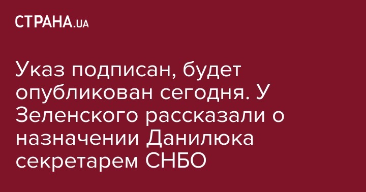 Указ подписан, будет опубликован сегодня. У Зеленского рассказали о назначении Данилюка секретарем СНБО