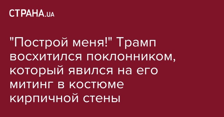 Выступая на сцене Трамп заметил человека в толпе в необычном костюме и попросил его выйти на сцену, где под всеобщее ликование он пожал ему руку. "Только посмотрите на этого парня. Теперь мы знаем, за кого он голосует", - пошутил Трамп. На видео видно, что мужчина был одет в костюм и галстук с рисунком кирпичной стены, а в руках он держал табличку с надписью "Построй меня!".