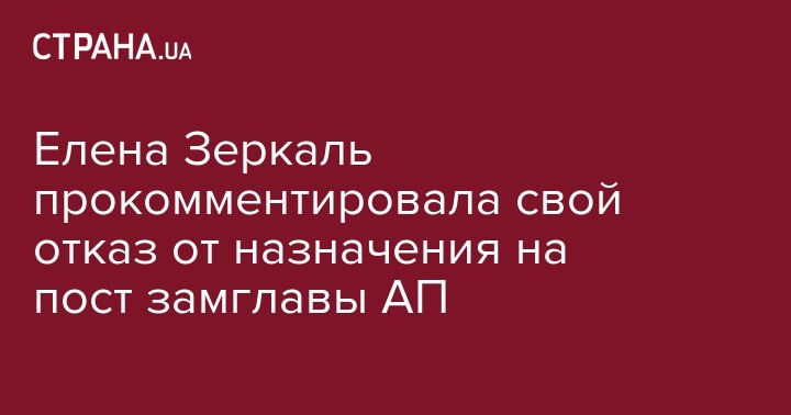Елена Зеркаль прокомментировала свой отказ от назначения на пост замглавы АП