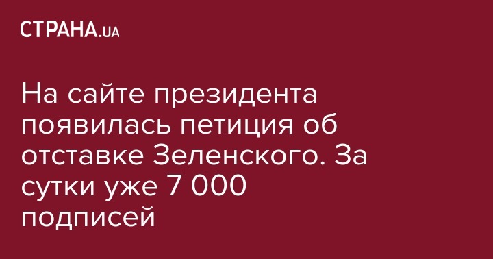 На сайте президента появилась петиция об отставке Зеленского. За сутки уже 7 000 подписей