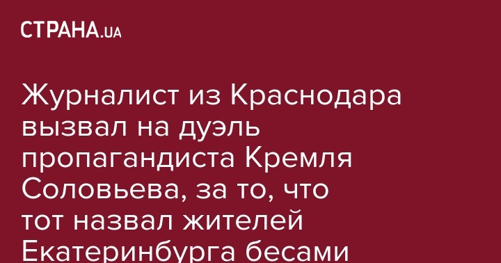 Журналист из Краснодара вызвал на дуэль пропагандиста Кремля Соловьева, за то, что тот назвал жителей Екатеринбурга бесами