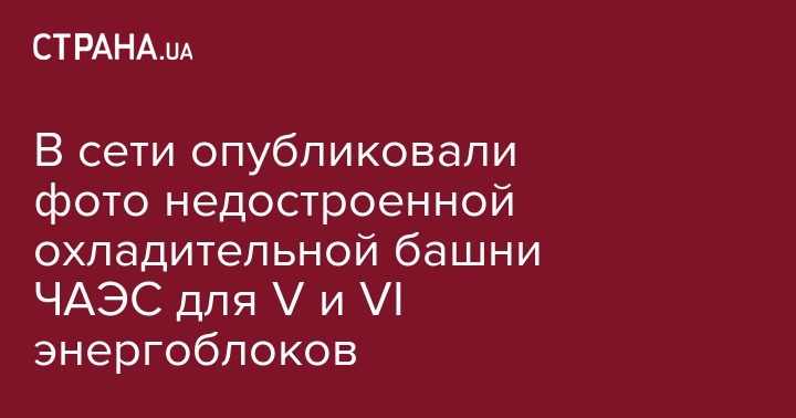 Государственное агентство Украины по управлению зоной отчуждение опубликовало в Facebook снимок недостроенной градирни для охлаждения V и VI энергоблоков Чернобыльской АЭС.