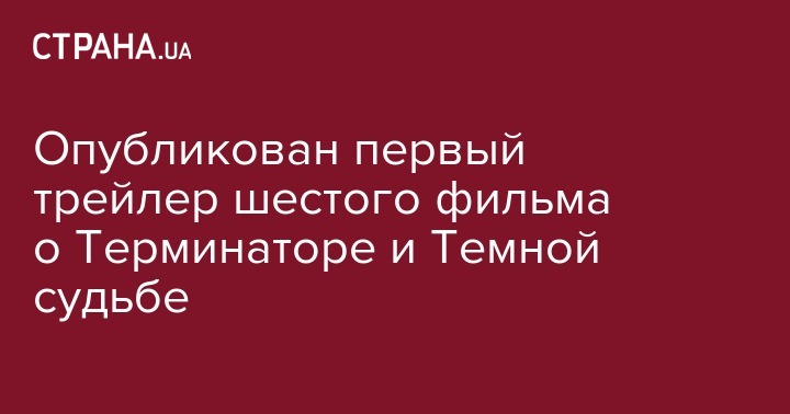Киностудия 20th Century Fox опубликовала первый трейлер ленты "Терминатор: Темная судьба", которая станет шестым фильмом франшизы "Терминатор" и сиквелом картин "Терминатор" и "Терминатор 2: Судный день". Видео появилось в YouTube.