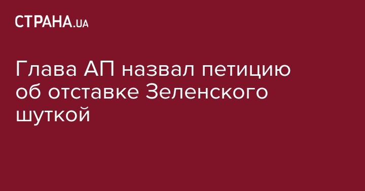 Петицию об отставке действующего президента Украины Владимира Зеленского, которая уже набрала обязательные для ее рассмотрения 25 000 подписей, в АП рассматривают "как шутку".