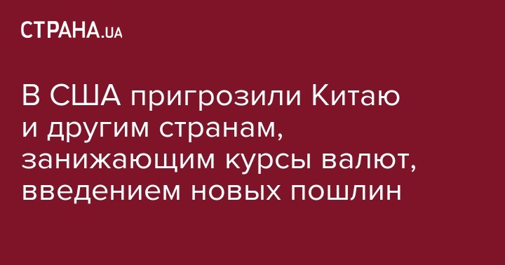 В США решили ввести новые пошлины на товары из тех стран, которые занижают курсы своих валют по отношению к доллару. Об этом пишет "Интерфакс".