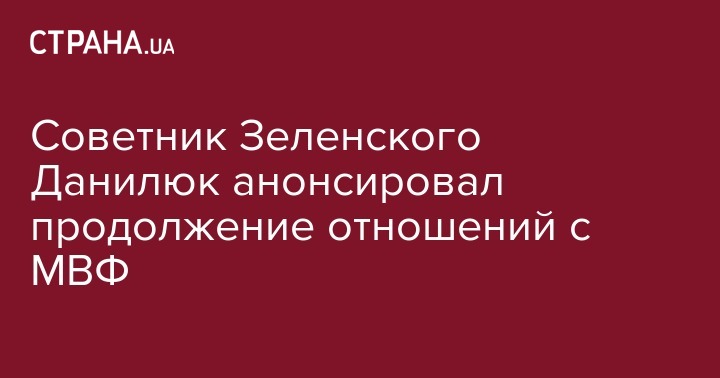 Советник Зеленского Данилюк анонсировал продолжение отношений с МВФ