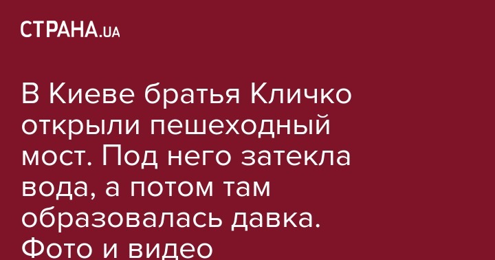 В Киеве братья Кличко открыли пешеходный мост. Под него затекла вода, а потом там образовалась давка. Фото и видео