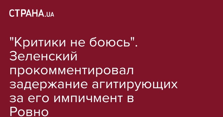 "Критики не боюсь". Зеленский прокомментировал задержание агитирующих за его импичмент в Ровно