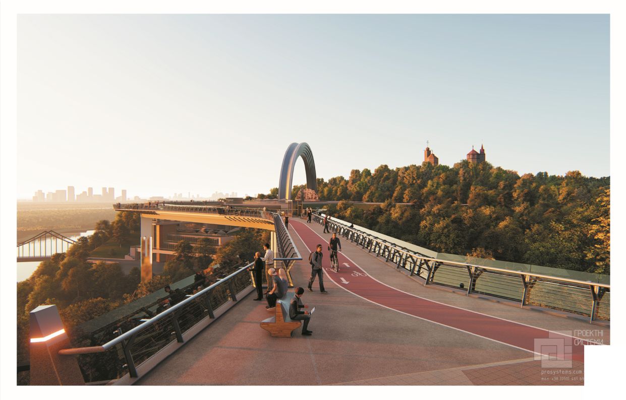 Тогда стали известны детали: были запроектированы две смотровые площадки с видами на Подол и левый берег. В местах смотровых площадок обустроены стеклянный пол и подсветка.
