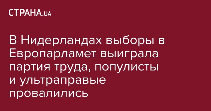 В Нидерландах выборы в Европейский парламент выиграла Партия труда (PvdA), которую возглавляет вице-президент Еврокомиссии Франс Тиммерманс. Об этом сообщает телеканал NOS.