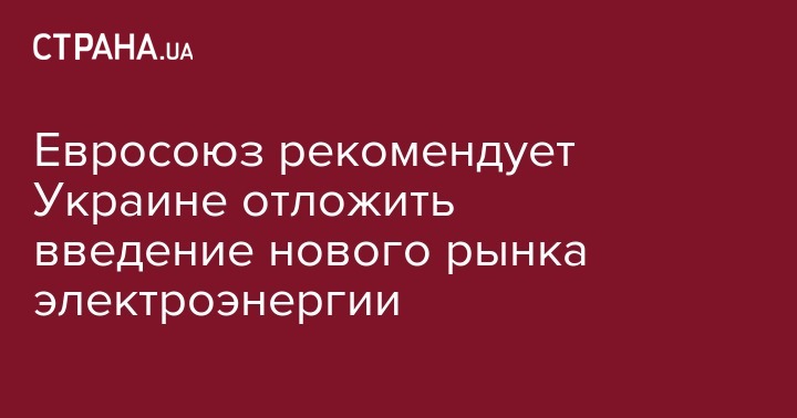 Евросоюз рекомендует Украине отложить введение нового рынка электроэнергии
