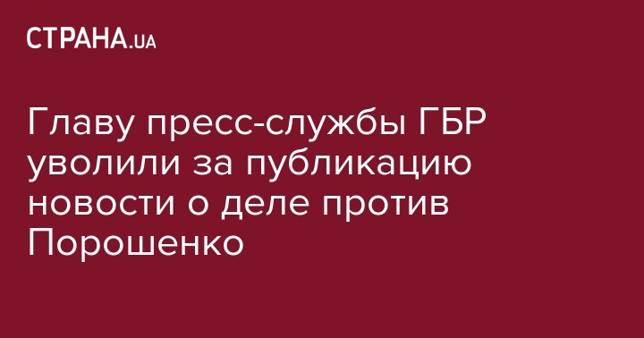 Директор ГБР Роман Труба уволил с занимаемой должности руководителя пресс-службы ведомства Андрея Малчика и назначил в.о Максима Белоусенко. Это произошло из-за публикации на сайте ведомства информации об открытии уголовного производства против экс-президента Петра Порошенко.