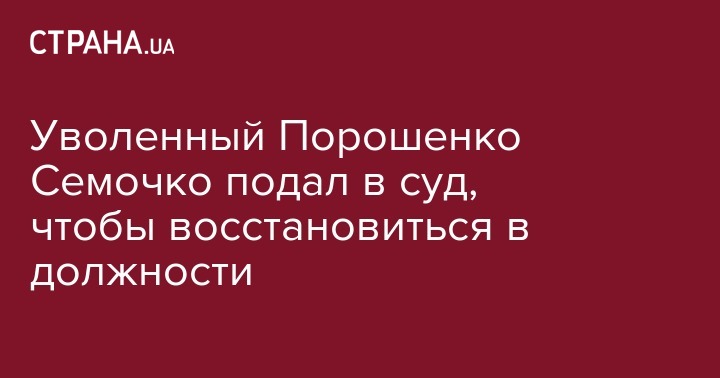 Семечко оспаривает указ президента Петра Порошенко, по которому он был уволен в апреле. О факте увольнения Семочко Порошенко заявил во время выступления 14 апреля в пресс-центре на НСК "Олимпийский".