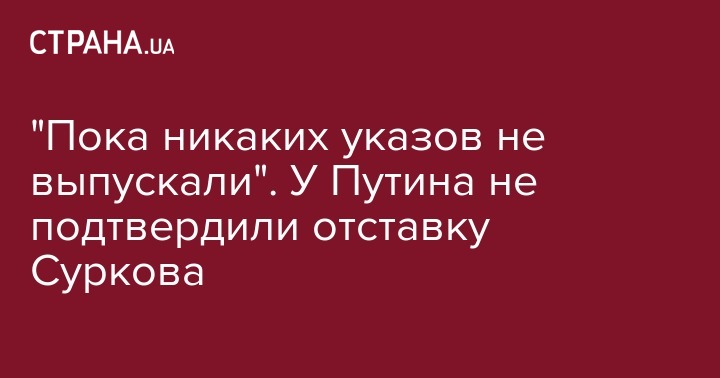 "Вы знаете, что мы традиционно никакие кадровые слухи не комментируем", - сказал Песков. При этом, отвечая на уточняющий вопрос, можно ли, исходя из вышесказанного, сделать вывод, что указа об отставке Суркова не было, Песков сказал: "Указы мы выпускаем, пока исходите из того, что никаких указов мы не выпускали".