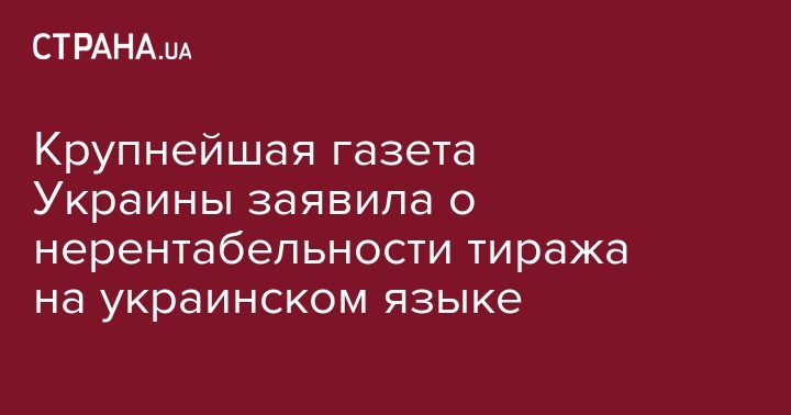 Газета "Сегодня", которая является крупнейшим ежедневным изданием Украины, отмечает нерентабельность выпуска украинского тиража - в связи с вступлением в действие закона об украинизации.
