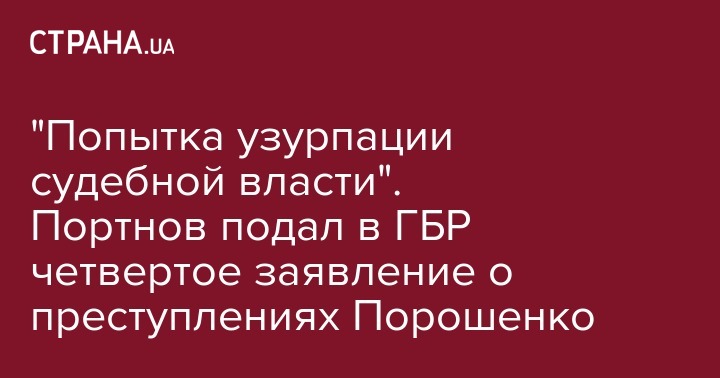 Юрис Андрей Портнов зарегистрировал в Государственном бюро расследований свое четвертое заявление на Петра Порошенко. В нем он обвинил экс-президента в попытке узурпировать судебную власть.