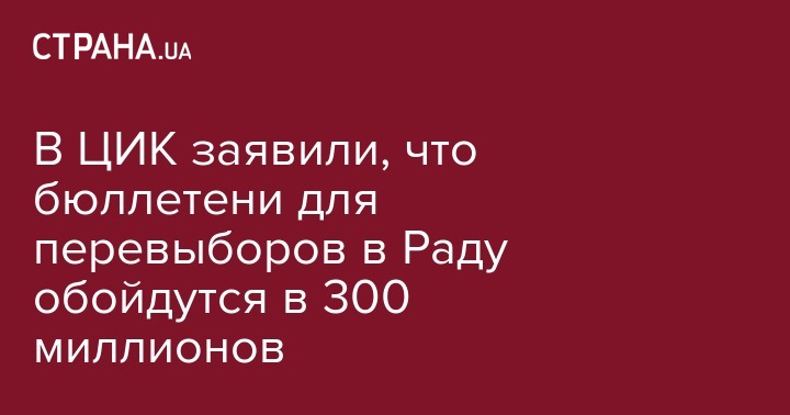 "Ожидаемая стоимость избирательных бюллетеней - 295 млн грн. Бюллетеней необходимо будет изготовить примерно вдвое больше, чем на президентских выборах, поскольку у нас выборы на многомандатных округах (более 30 млн шт.) и выборы на общенациональном многомандатном избирательном округе - это тоже более 30 млн бюллетеней", - заявил заместитель председателя ЦИК Евгений Радченко.