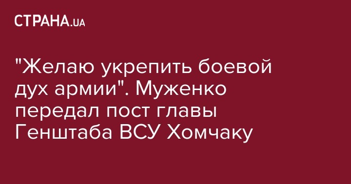 Виктор Муженко, который с июля 2014 года возглавлял Генштаб ВСУ, подал рапорт министру обороны Степану Полтораку и передал дела своему преемнику Руслану Хомчаку. Об этом он написал на странице в Facebook.