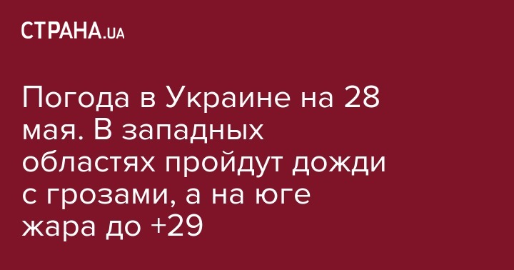 Во вторник, 28 мая, в западных областях Украины продолжатся дожди, а вот в остальных регионах страны будет тепло и солнечно. Об этом свидетельствует прогноз, размещенный на сайте Укргидрометцентра.