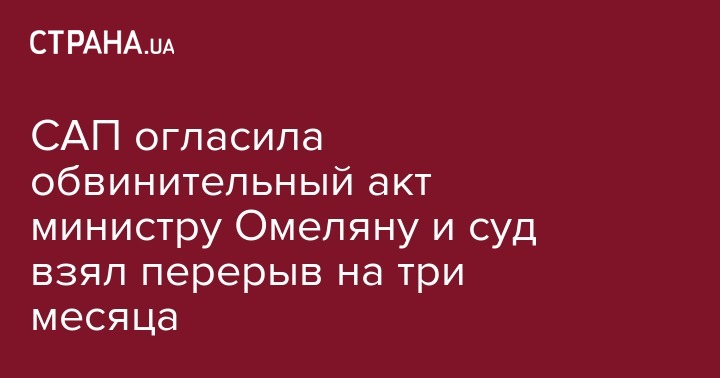 Вчера, 27 мая, в Соломенском районном суде Киева с участием прокуроров САП прошло очередное судебное заседание по делу об обвинении министра инфраструктуры Украины Владимира Омеляна в недостоверном декларировании. Об этом сообщает пресс-служба САП на странице ведомства в соцсети.