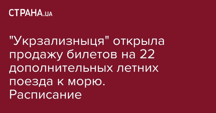 "Укрзализныця" назначила 22 дополнительных летних поезда и дополнительные рейсы графиковых поездов в направлении морских курортов Украины. Об этом сообщается на сайте ведомства.