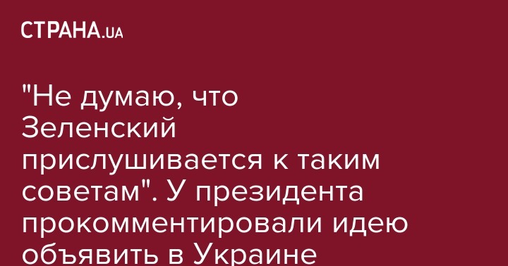 "Я не думаю, что президент (Владимир Зеленский - прим. ред.) прислушивается сейчас к подобным советам. У него сейчас сформирована команда людей, к которым он прислушивается. Еще раз подчеркну: есть позиция отдельных бизнесменов. Позиция государства заключается в другом – государство должно защищать интересы граждан", - сказал он на брифинге в Киеве во вторник.