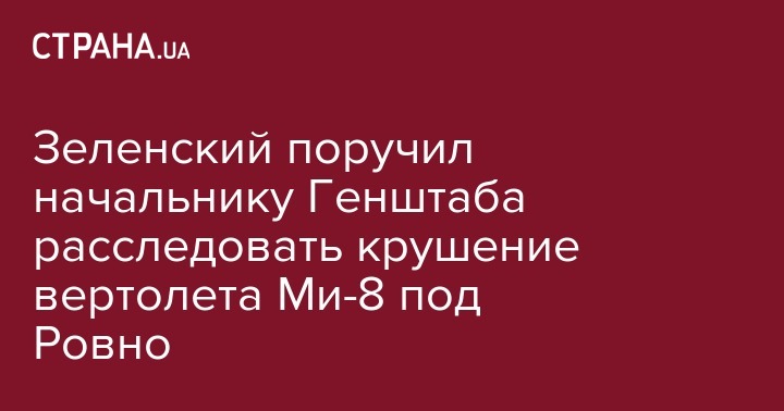 Президент Владимир Зеленский поручил начальнику Генштаба Руслану Хомчаку взять под личный контроль расследование гибели 4 военных из-за падения вертолета Ми-8 в Ровенской области. Об этом он написал в микроблогге Twitter.