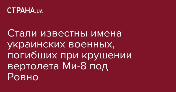 Стали известны имена военных, погибших в результате падения вертолета Ми-8 в Ровенской области. Об этом сообщили в пресс-службе командования Сухопутных войск ВС Украины в Facebook.