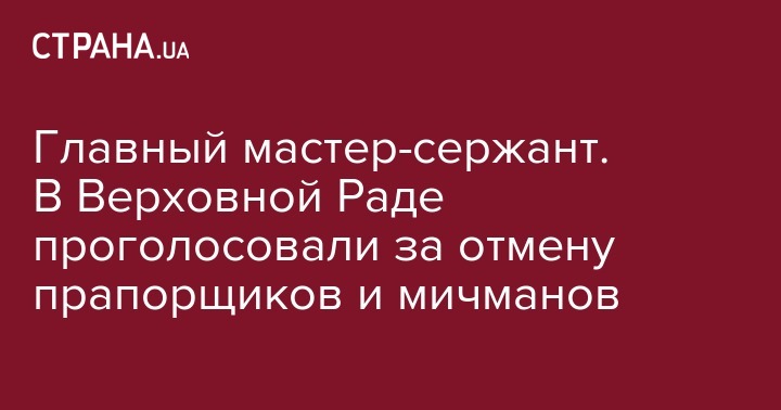 Действующий состав Верховной Рады в первом чтении проголосовал за законопроект, которым предлагается ввести новую шкалу армейских и корабельных званий. В частности, предлагается упразднить прапорщиков и мичманов, разделив при этом сержантский и старшинский состав на "младший" и "старший".