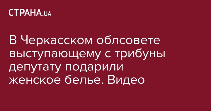 В Черкасском областном совете местному депутату во время его выступления с трибуны преподнесли в подарок женское нижнее белье. Инцидент оказался запечатлен на видео.