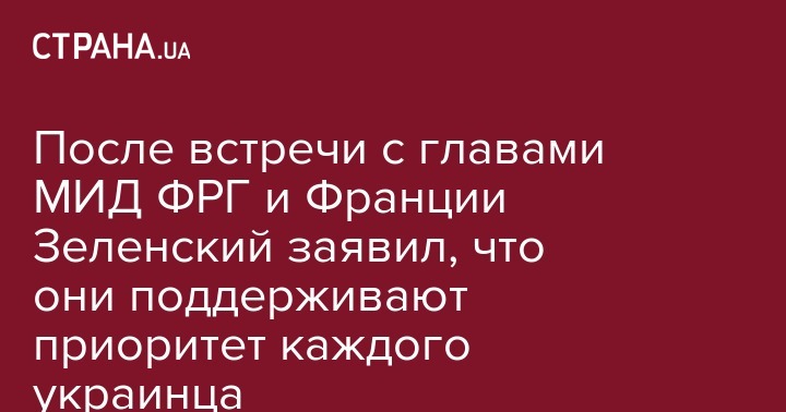 После встречи с главами МИД ФРГ и Франции Зеленский заявил, что они поддерживают приоритет каждого украинца