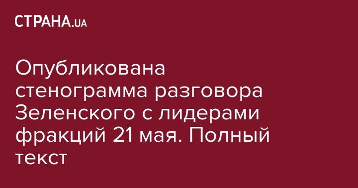 В администрации президента опубликовали стенограмму встречи президента Украины Владимира Зеленского с руководством Верховной Рады и парламентских фракций 21 мая, передает пресс-служба АП.