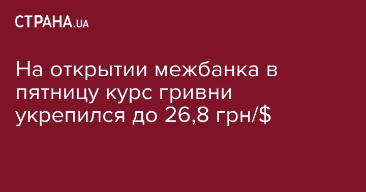 На открытии межбанка в пятницу курс гривни укрепился до 26,8 грн/$